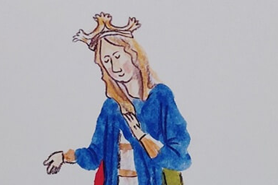 Her childhood inspires me. She was raised in the prestigious Godwin House. For a woman, her education at Wilton Abbey near Salisbury was unique. She learned English, Danish, French, Irish, and Latin. She studied language, rhetoric, arithmetic, astronomy, music, embroidery, and weaving. Skills became her secret weapons. After wooden constructions collapsed, she reconstructed the abbey church in stone. My mind imagines her needle creating a kingdom.